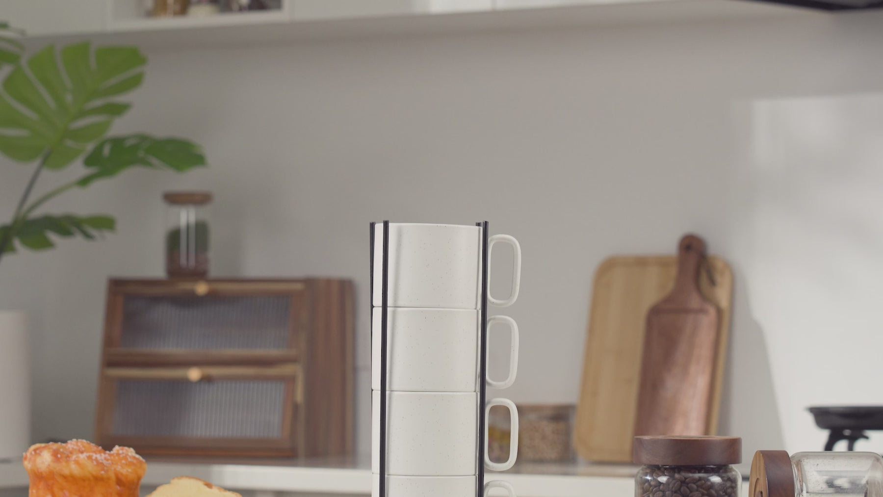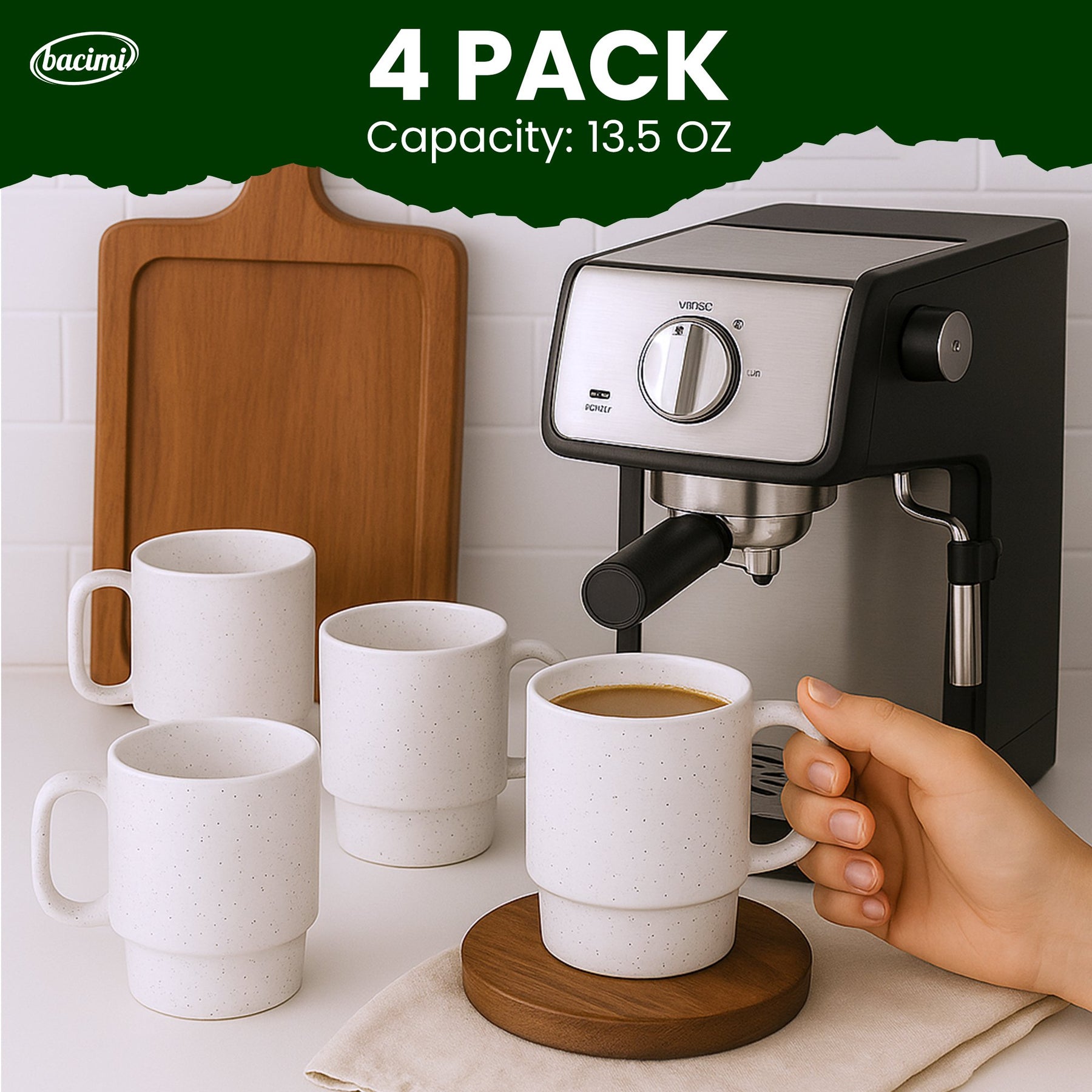 Elevate your coffee experience with the Bacimi stylish stackable coffee mugset with metal rack. The set of four cups adds a touch of contemporary elegance to your drinking rituals.